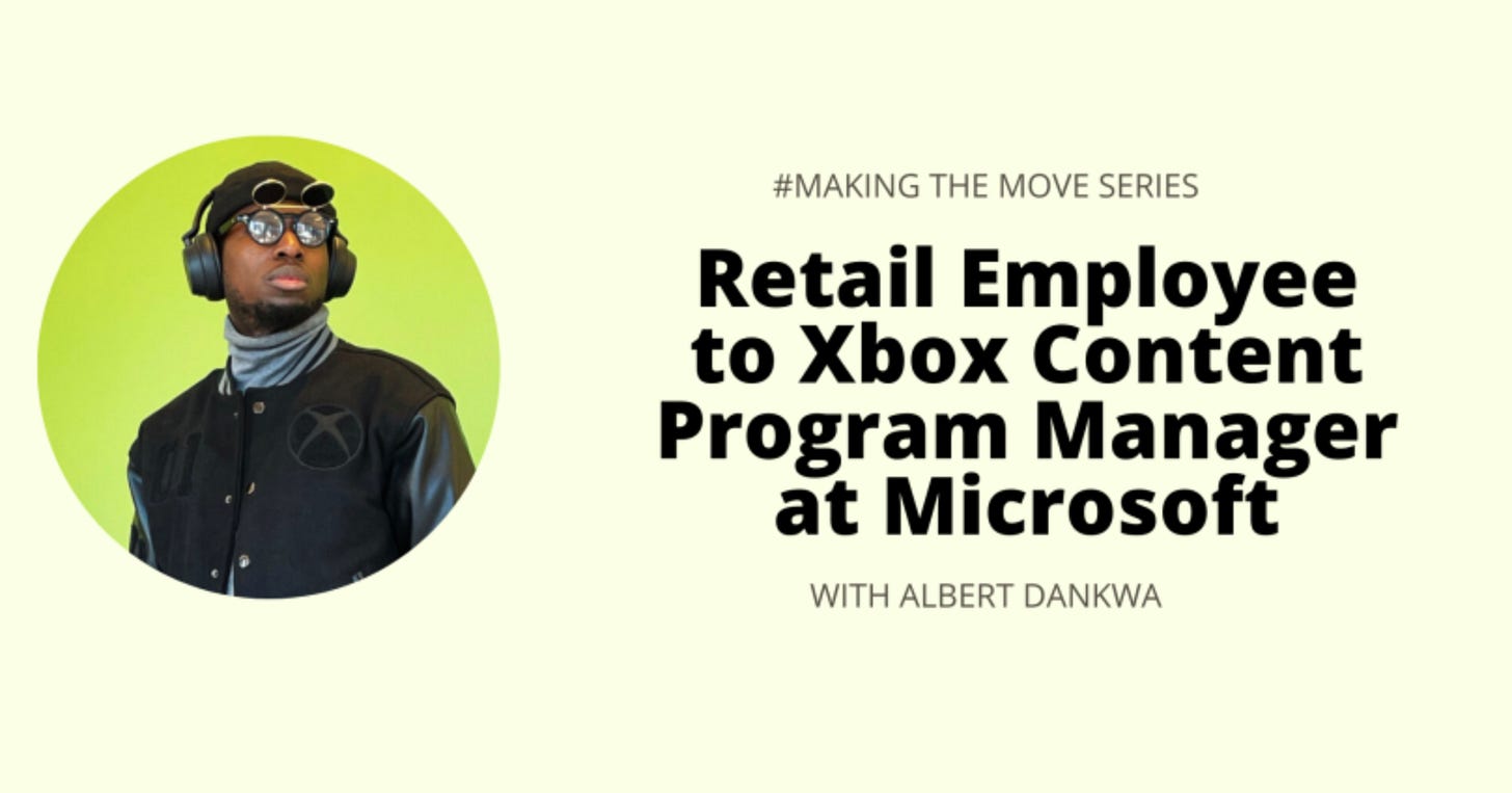 Albert didnât just land a job at Microsoft. He created oneâafter years of getting told he didn't have enough experience or the right background. Read about Albertâs career journey from working at Rite-Aid for $7.45/hour to managing global campaigns and storytelling for one of the biggest brands in gaming #Xbox.